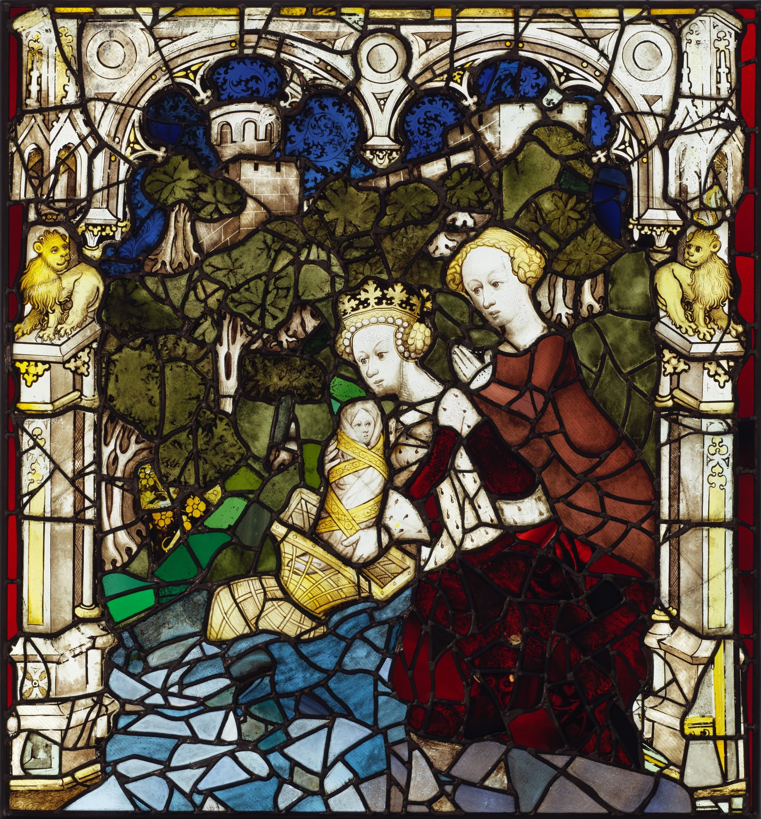 Pharaoh’s Daughter rescuing Moses from Nile, York Minster Great East Window, John Thornton of Coventry 1405-08